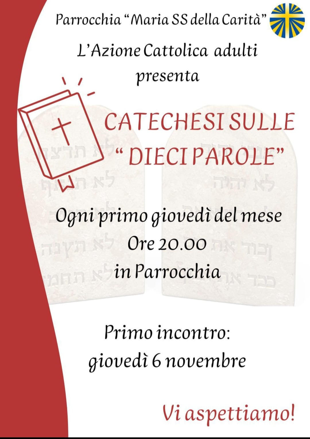 Il settore adulti dell'Azione cattolica della parrocchia Maria Santisima della Carità in Moschiano presenta, a partire da domani, giovedì 6 novembre, la catechesi sulle "Dieci Parole", la serie di incontri ideata da don Fabio Rosini e dedicata ai dieci comandamenti.