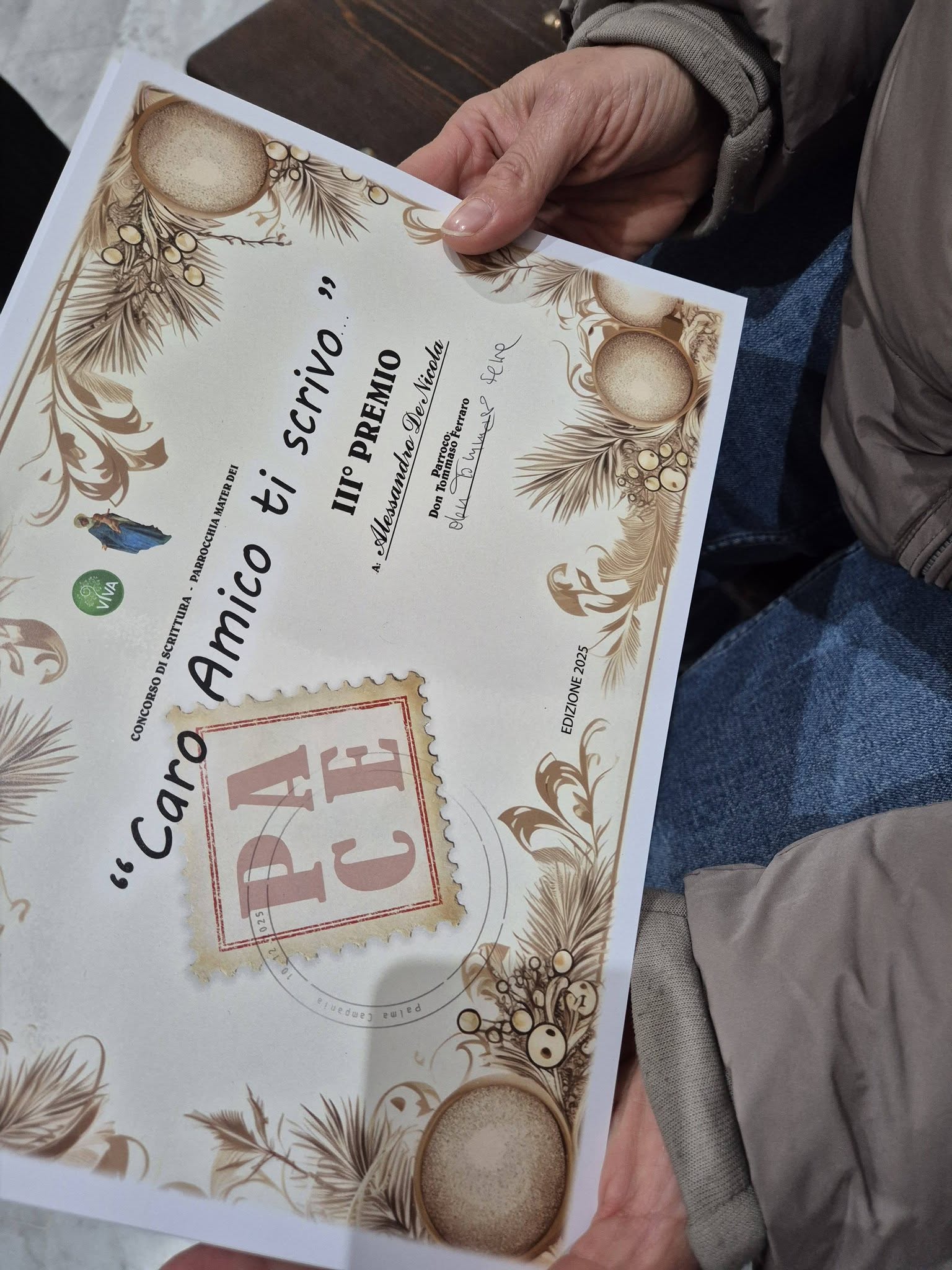 Lo scorso 10 dicembre presso la parrocchia Mater Dei si è tenuta la serata di premiazione del concorso di scrittura dedicato ai più piccoli che si sono cimentati nella scrittura di testi destinati a un amico lontano che vive in terre in guerra